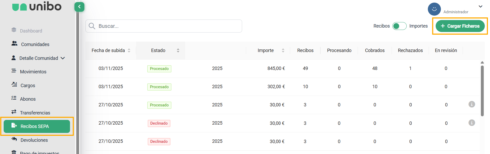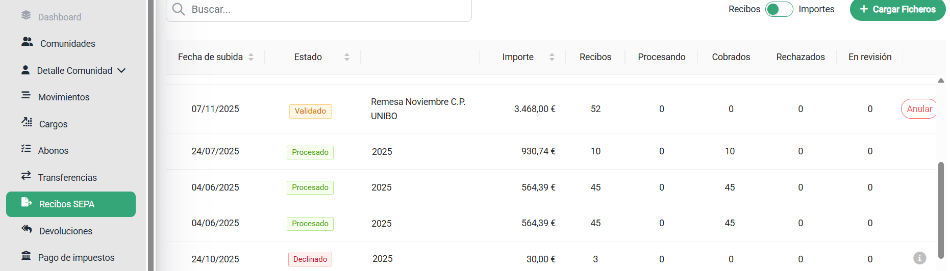 RUTA_NAV: Home / Recibos SEPA / + Cargar Ficheros