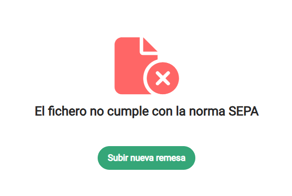 Si vemos un mensaje como este, la remesa no se procesará. En este caso, debemos corregir el error y volver a procesar un nuevo fichero modificado.