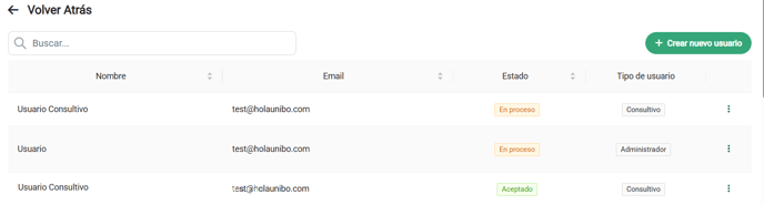 En este menú podremos ver todos los usuarios del despacho, ya sean administradores o consultivos, y que estén tanto activos como en proceso de activación.