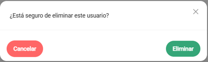 En el caso de que queramos confirmar el borrado del usuario, solo tendremos que pulsar en la opción Eliminar usuario. Se mostrará una ventana de confirmación y al pulsar "Eliminar" el usuario desaparecerá de la lista y ya no tendrá acceso al portal.