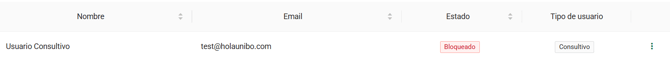 Otra opción disponible es bloquear al usuario. En este caso el usuario no tendrá acceso al portal mientras esté en este estado, hasta que decidamos desbloquearlo. Para desbloquear al usuario solo tendremos que volver a pulsar en el menú de los tres puntos verticales y, para usuarios bloqueados, aparecerá la opción desbloquear.