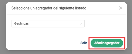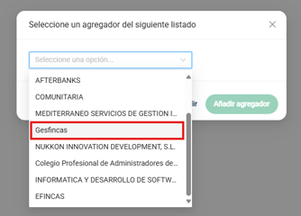 Una vez seleccionado Gesfincas, pulsaremos "Añadir agregador":